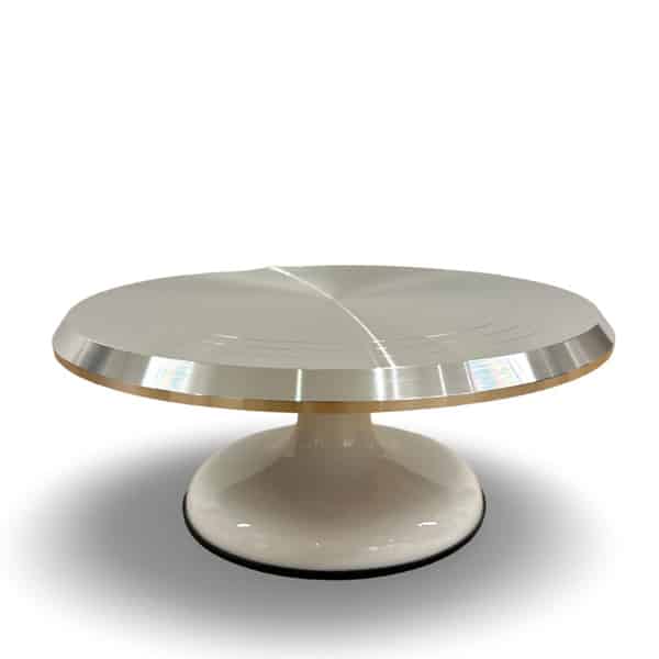 מעמד מקצועי מסתובב לעוגה | נירוסטה עם בסיס לבןמעמד מקצועי מסתובב לעוגה | נירוסטה עם בסיס לבן