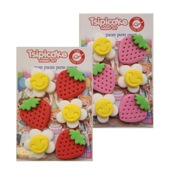 פרחים ותותים מבצק סוכר - ורוד/ אדום | 6 יחידותפרחים ותותים מבצק סוכר – ורוד/ אדום | 6 יחידות